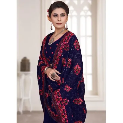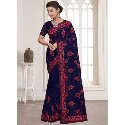 Navy Blue Resham Work Georgette Saree Elegant Career Dress