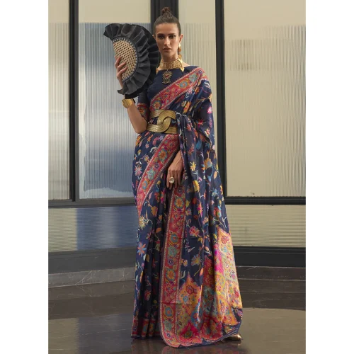 Navy Blue Modal Silk Saree with Kashmiri Work Casual Dresses Product