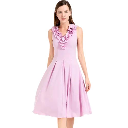 ND004 Odm Solid Sleeveless Ruched Ruffle Midi Party Dress for Women