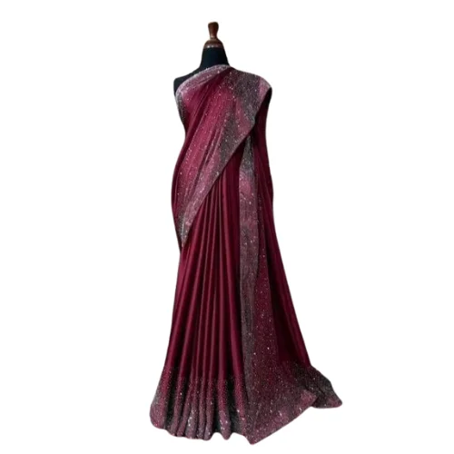 New Arrival Party Wear Heavy Embroidery Sequence Design Work Georgette Indian Saree with Same Embroidery Work Blouse for Women