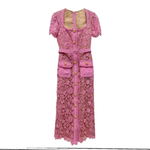 NNR Women Casual Winter Office Business Work Flounce Pink Lace Mermaid Dress