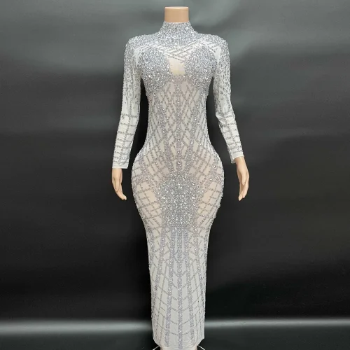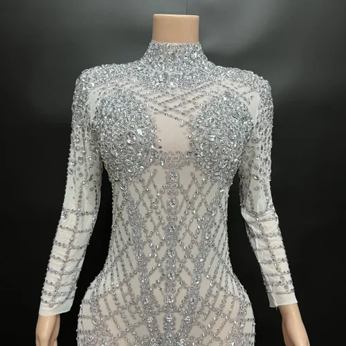 NOCANCE 2023 New Arrivals Dazzling Diamonds High Neck Long Sleeve White Dress Party Dresses Women Evening Elegance for Party