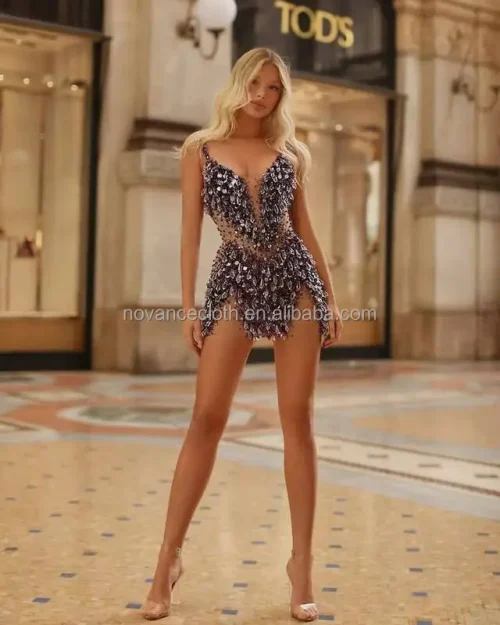 Nocance Novance Stock X Sparkly Crystals Mesh Fringe Chica Vestido De Noche Dress Women Ladies Dresses Valentine’S Day Outfits