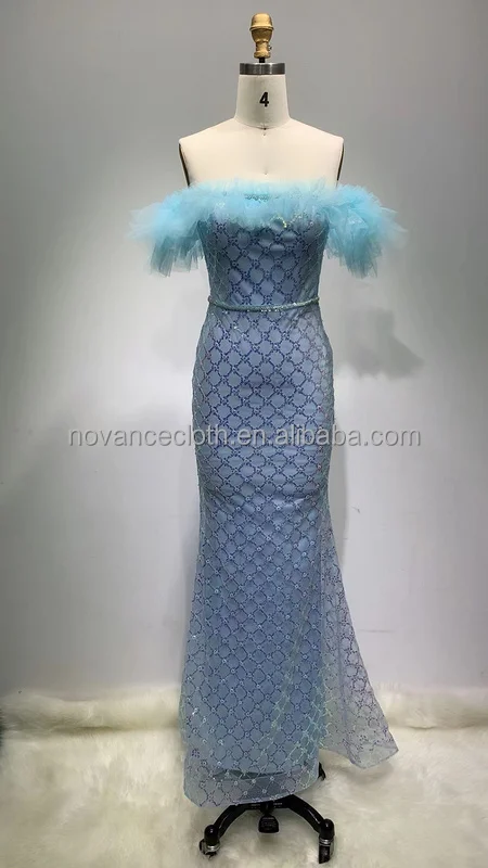 Nocance New Arrivals Clothes for Ladies Blue Strapless Elegant Evening Dress Sequin Sexy Long Dress Vestidos De Novia Boda Civil