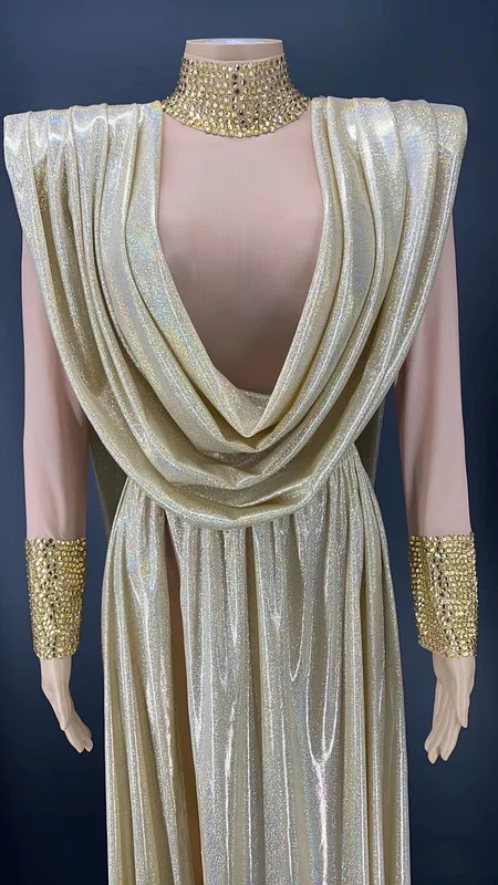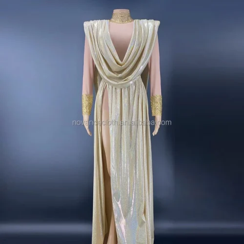 NOVANCE Plus Size Spring Clothing 2022 Pleated High Split Sexy Diamond Goddess Design Dresses Champagne Color Evening Dress