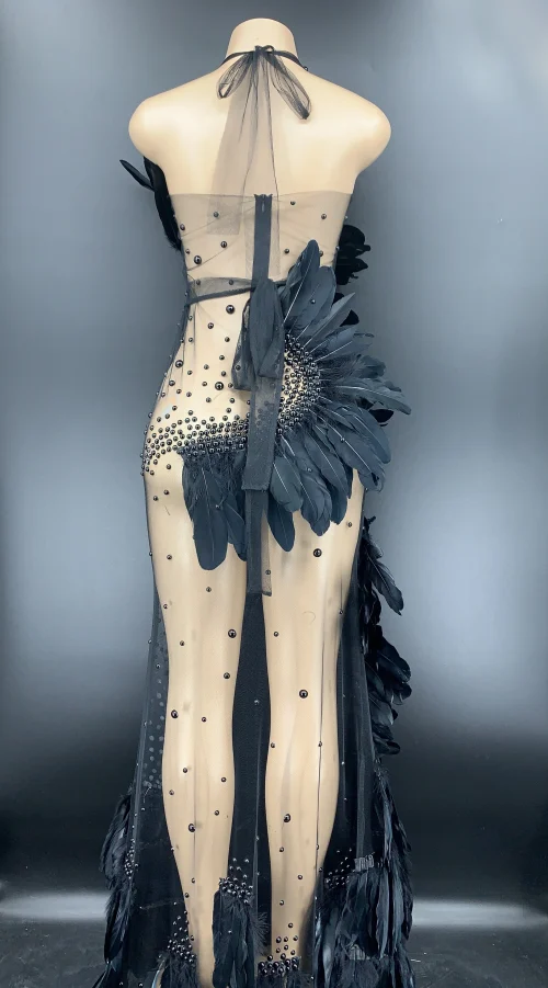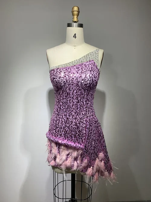 NOVANCE Women Boutique Clothing 2023 Irregular Folds Shiny Sequins pink Ball Gowns With Feather Sexy Dresses Women Night Club