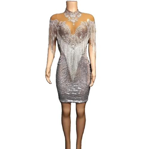 NOVANCE Sparkly Dress for Women Sequins Rhinestones Tassel Dress Prom Celebrate Dance Outfit Prom Dress Women Evening Gowns