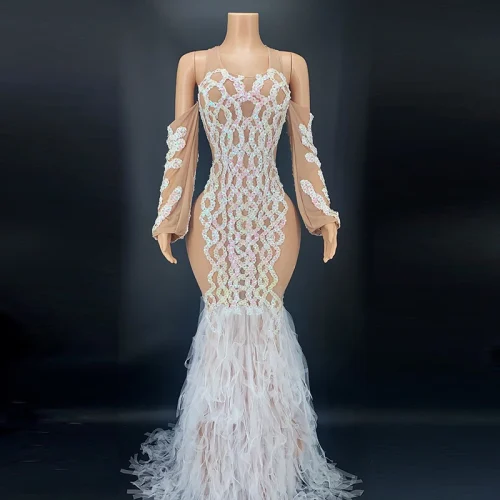 Novance Spring 2021 Designer Perspective Mermaid Wedding Dress Maid Stage Costumes for Singer See Through Sequin Evening Dresses