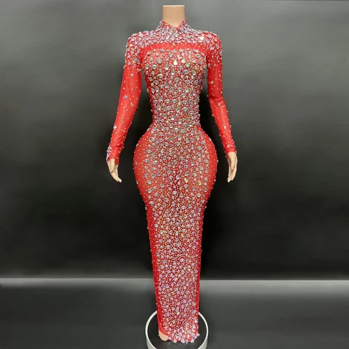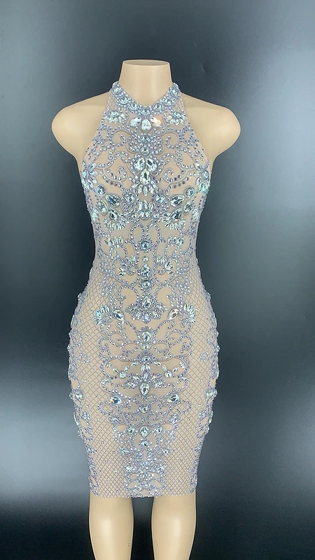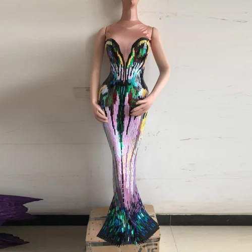 Novance Y1013 Sparkly Rhinestone Costume Bodycon Women Dresses Prom Club Dresses Birthday Performance Costume-da-sirenetta-donna