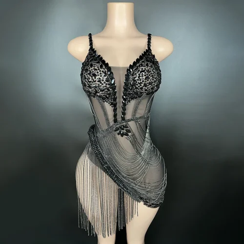 Novance Y1838-B Summer Clothes for Women 2022 Sexy Crystal Tassel Summer Night Club Dress Perspective Plus Size Women Prom Dress
