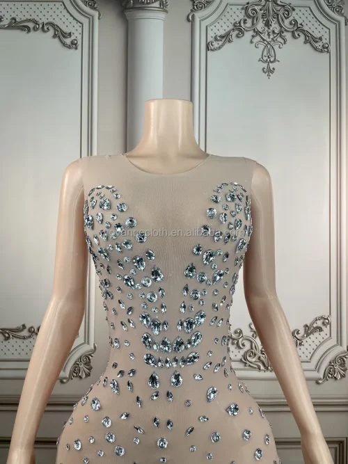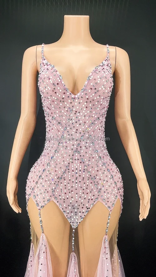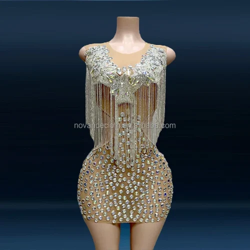 Novance Y2504 High Fashion Blingbling Diamond Tassel Special Needs Clothing Nightclub Style Hollow Out Dress Vestido Pasarela