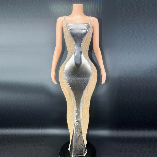 NOVANCEY 1739-A Trending Products 2022 New Arrivals Stretchy Diamond Tassel Silver Women Party Dress Club Dresses for Nightclub