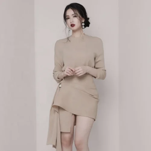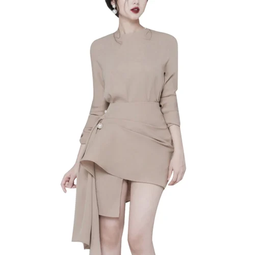 Office Work Wear Sets Skirt Long Sleeve Two Piece Style Irregular Body-con Dress