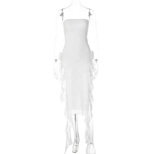 Off Shoulder Strapless Split Mesh Irregular Patchwork Midi Dress Fashion Clubwear for Women
