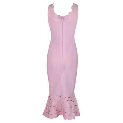 Ocstrade Ropa Femenina Pink Elegant Off the Shoulder Holes Falbala Hem Mermaid Vestito Lungo Kleid Kleidung Gaun Bandaged Dress