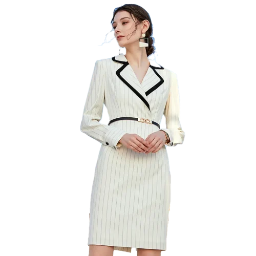 ODM Career Office Stripes Dresses for Women Daily Work by Garment Luxury Production