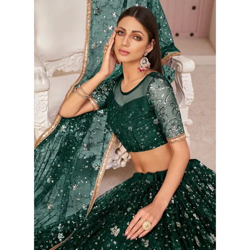 Pista Green Embroidery Work Prom Dresses Butterfly Net Lehenga Choli for Party Wear