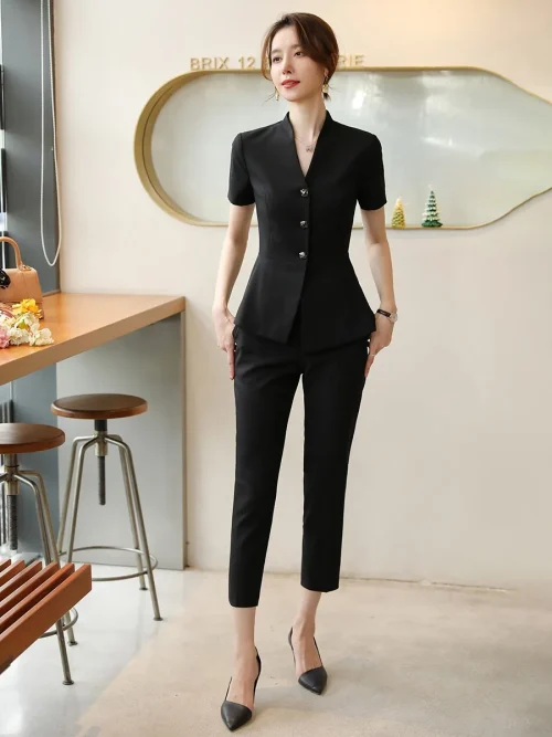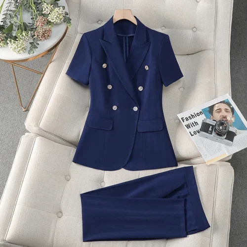 Professional Suit Women’s Summer Thin Short Sleeve Fashion Suit Skirt el Office Lady Managers Work Dress Business Suits