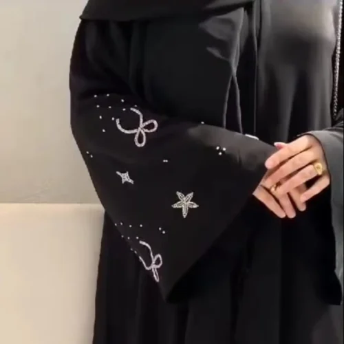 Women’s Elegant Modest Hand Embroidered Bow Abayas Formal Dubai-Style Dresses Breathable Traditional Muslim Clothing Hand Work