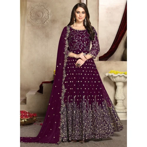 Women’s Georgette Anarkali Suit with Elegant Wine Embroidery Work Set