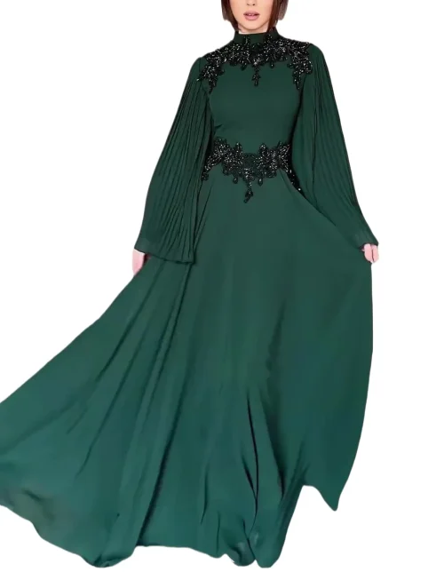 Women’s Colorful Butterfly Sleeve Sequin Patchwork Abaya Polyester Arabian Dress