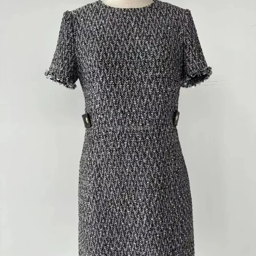 Women’s Elegant A-Line Tweed Dress Short Sleeve Retro O-Neck Patchwork Luxury Evening Dress Casual