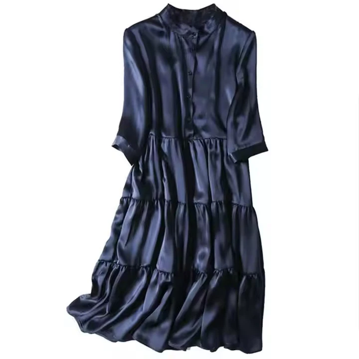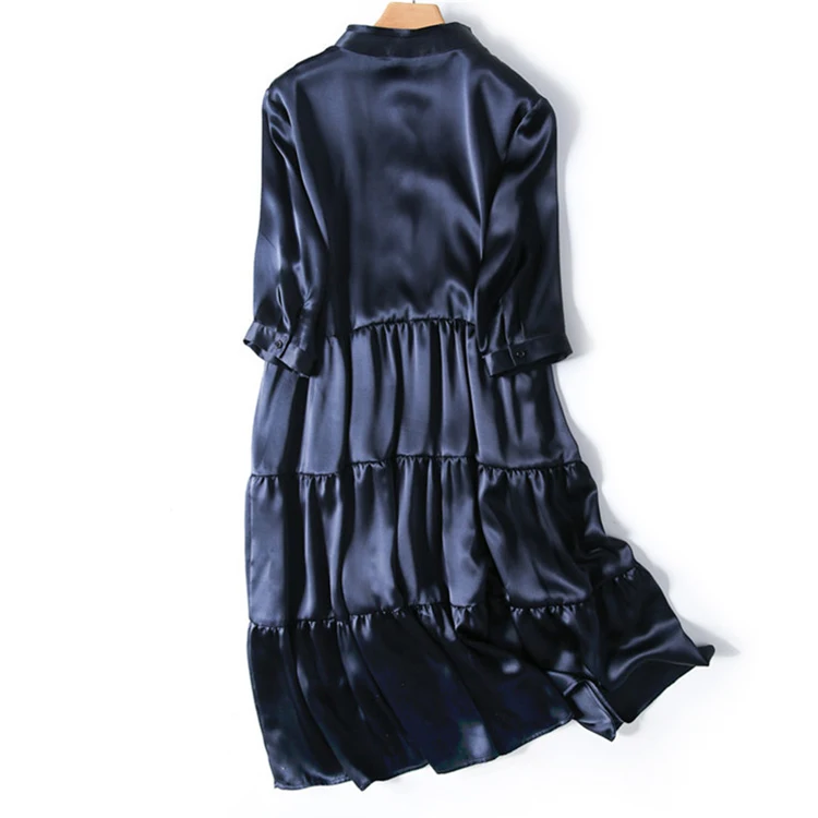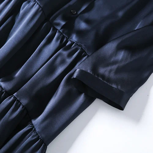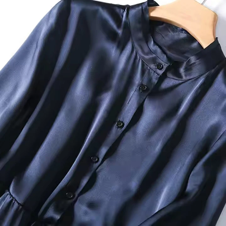 Product Name: 100% Silk Premium Quality Long Sleeve Knee Button up Women’s Satin Silk Dress
