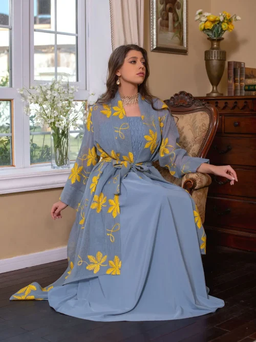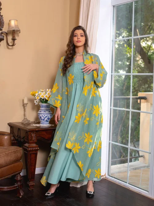 Product Name: 2 Piece 3 Colors Ladies Suits Kimono with Inner Dress Jubah Muslimah Abaya Kurta Sets for Women Kaftan Maxi Dress
