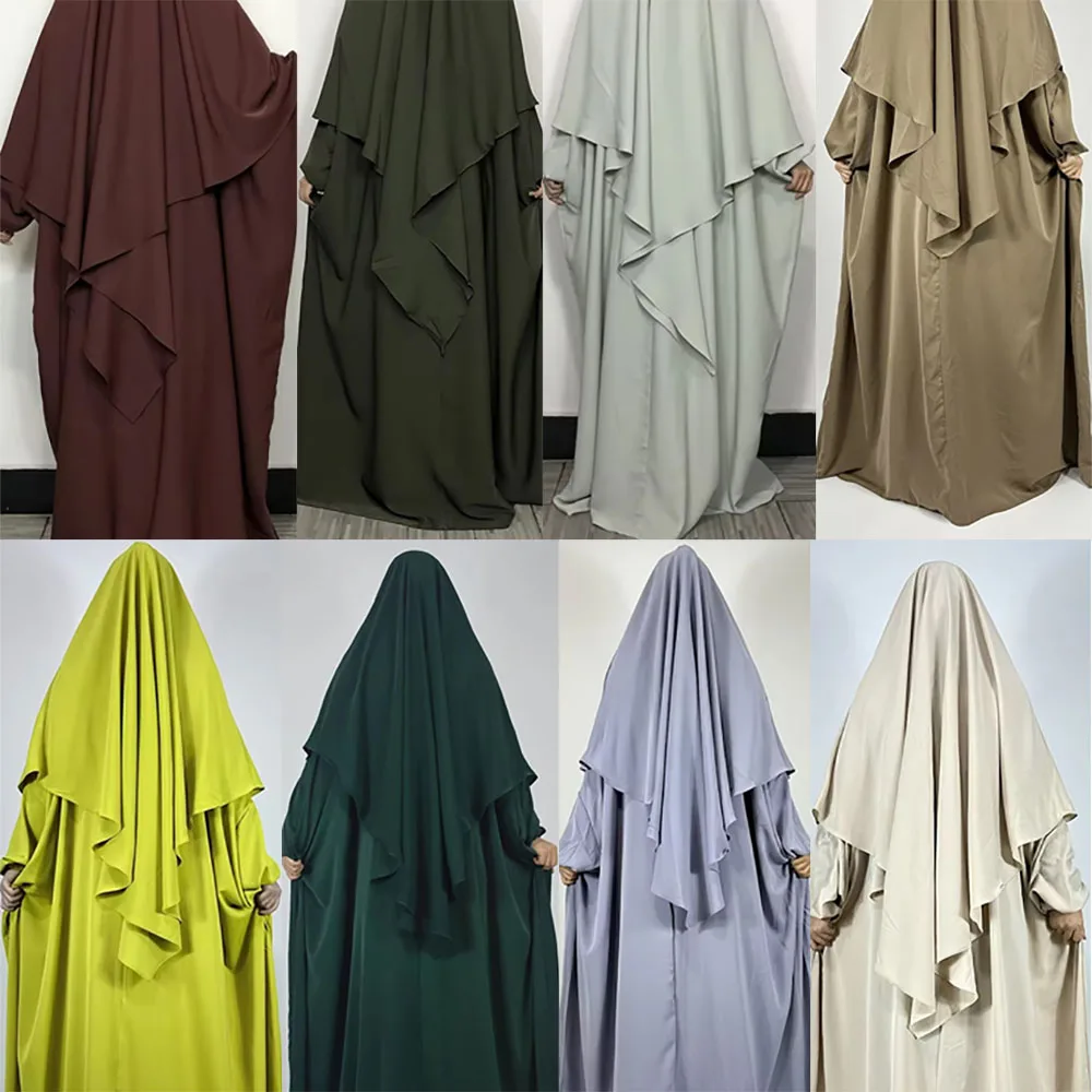 2 Piece Set Nida Abaya With Khimar EID High Quality Islamic Clothing Plus Size Women Muslim Dress Prayer Modest Abaya