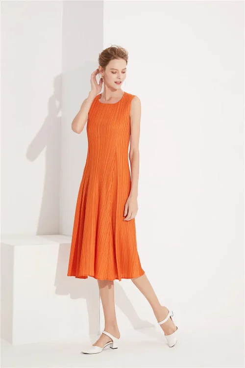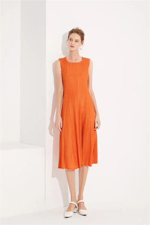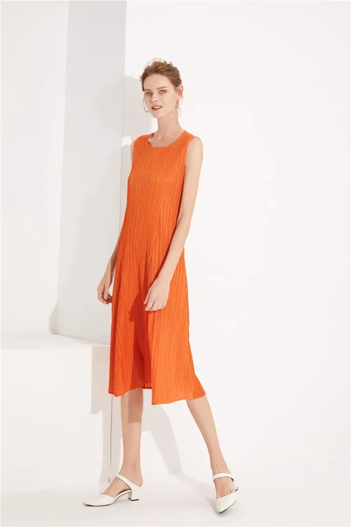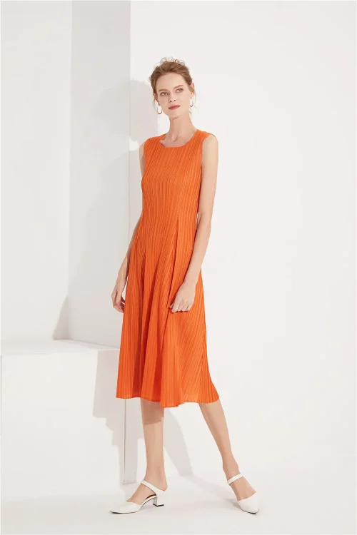 Product Name: 2019 Summer Lady New Style Elegant Knee Length Sleeveless Woman Casual Pleated Maxi Dress