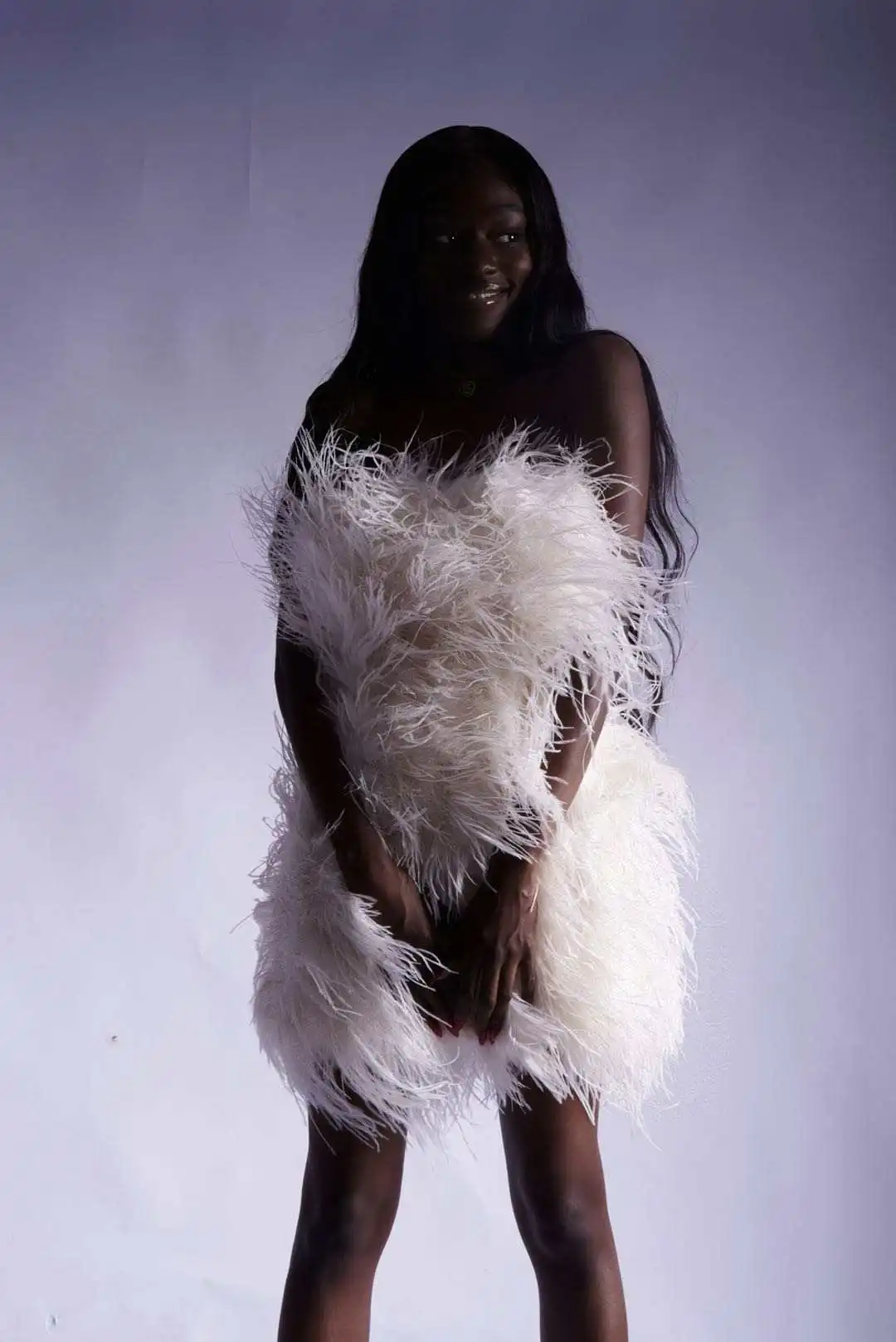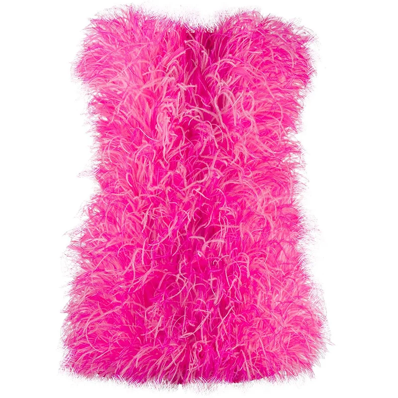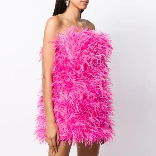 Product Name: 2021 Newest Popular Design Women pink Mini Cocktail Ostrich Feather Dress