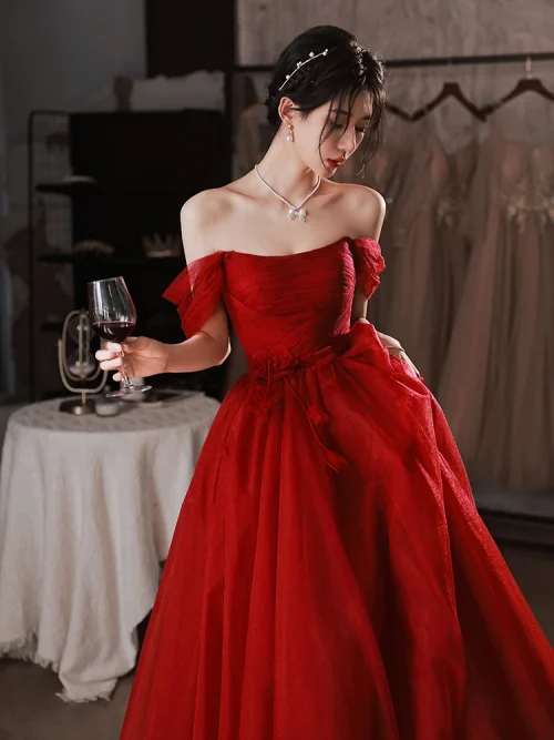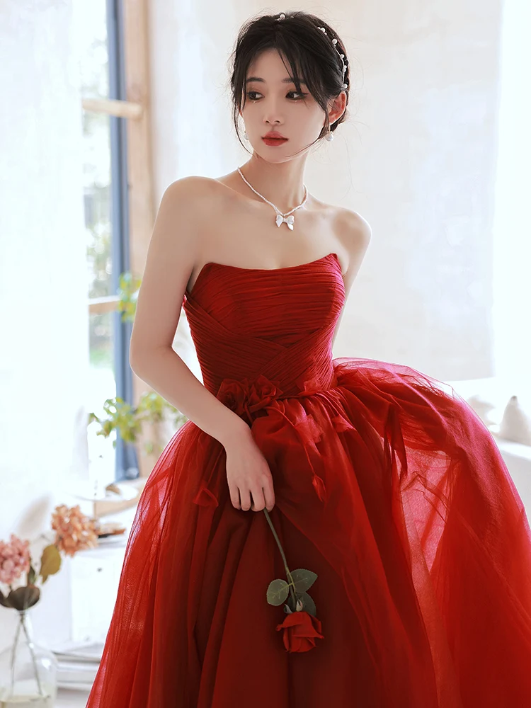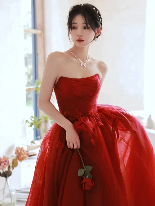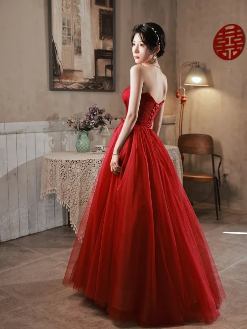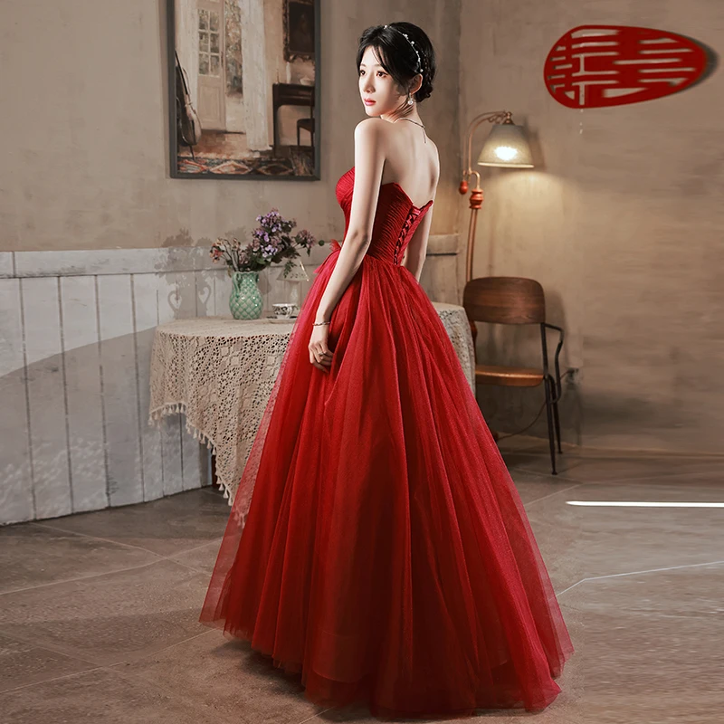 2022 New Design Women Sleeveless Red Beading Beaded Maxi Gowns Simple Casual Dress Bridesmaid Dresses