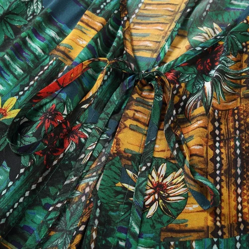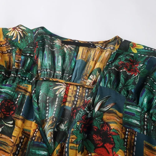 Product Name: 2023 100% Real Silk Boho Caftan Dress Summer Beach Floral Printed Long Kimono Women Bikini Kaftan Elegant Silk Chiffon Cover up