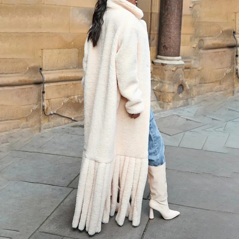 Product Name: 2023 Autumn and Winter New Niche Design Sense of Wool-like Coat Female Winter Suit Collar Plush Splicing Wool Strip Long Coat