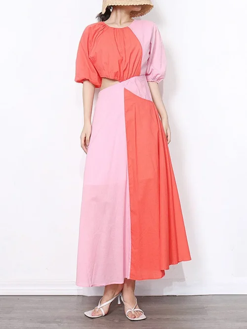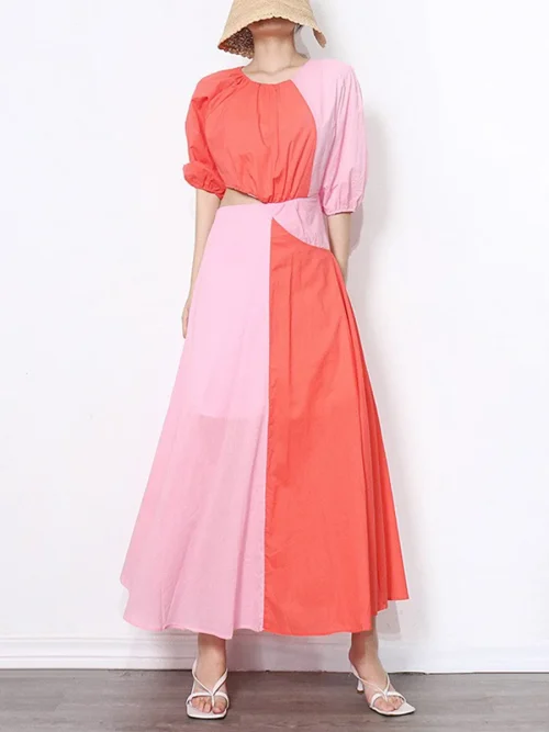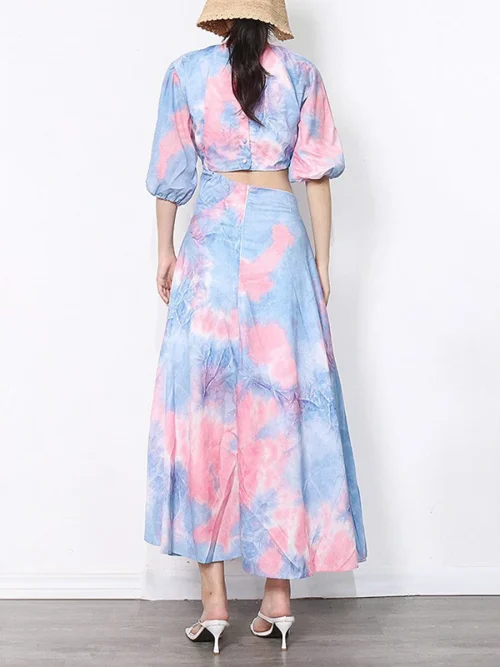 Product Name: 2023 European and America Sexy Backless Women O-Neck Tie Dye Dress Slim Waist Holiday Casual Maxi Dress Autumn