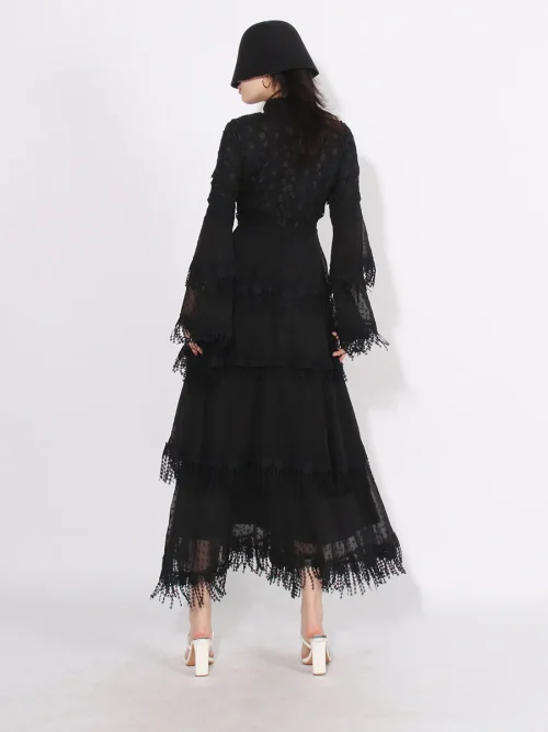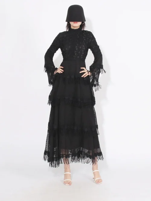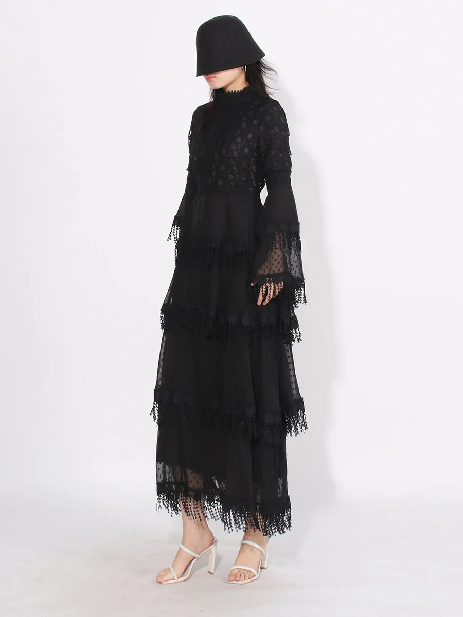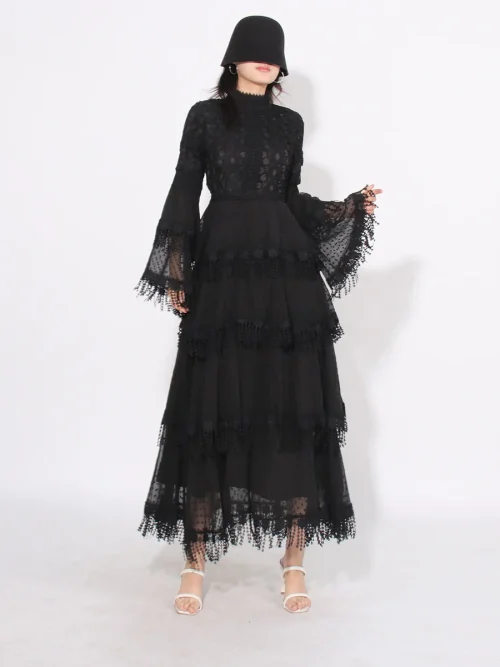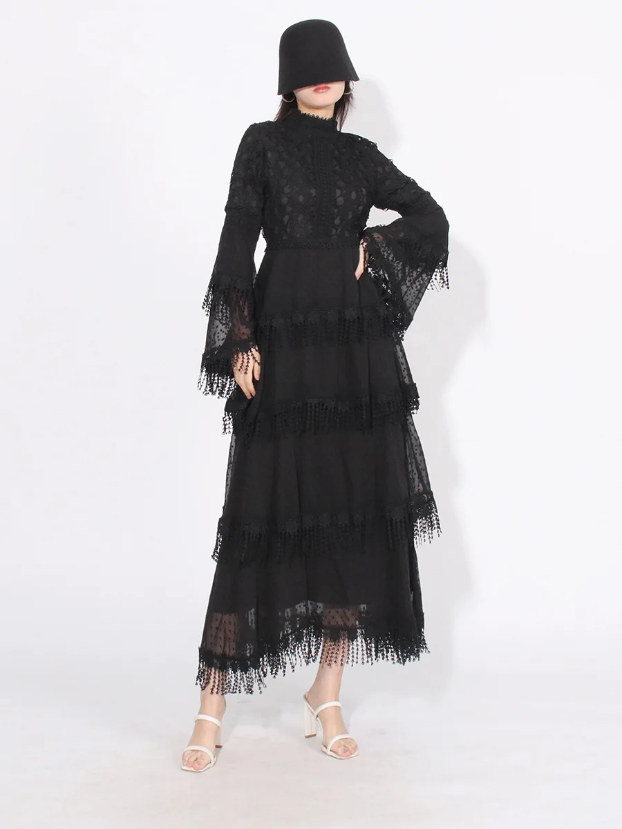 Product Name: 2023 New Arrival Temperament Lace Patchwork Design Women Dress Slimming Waist Maxi Lady Dress