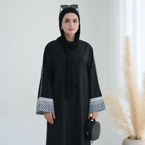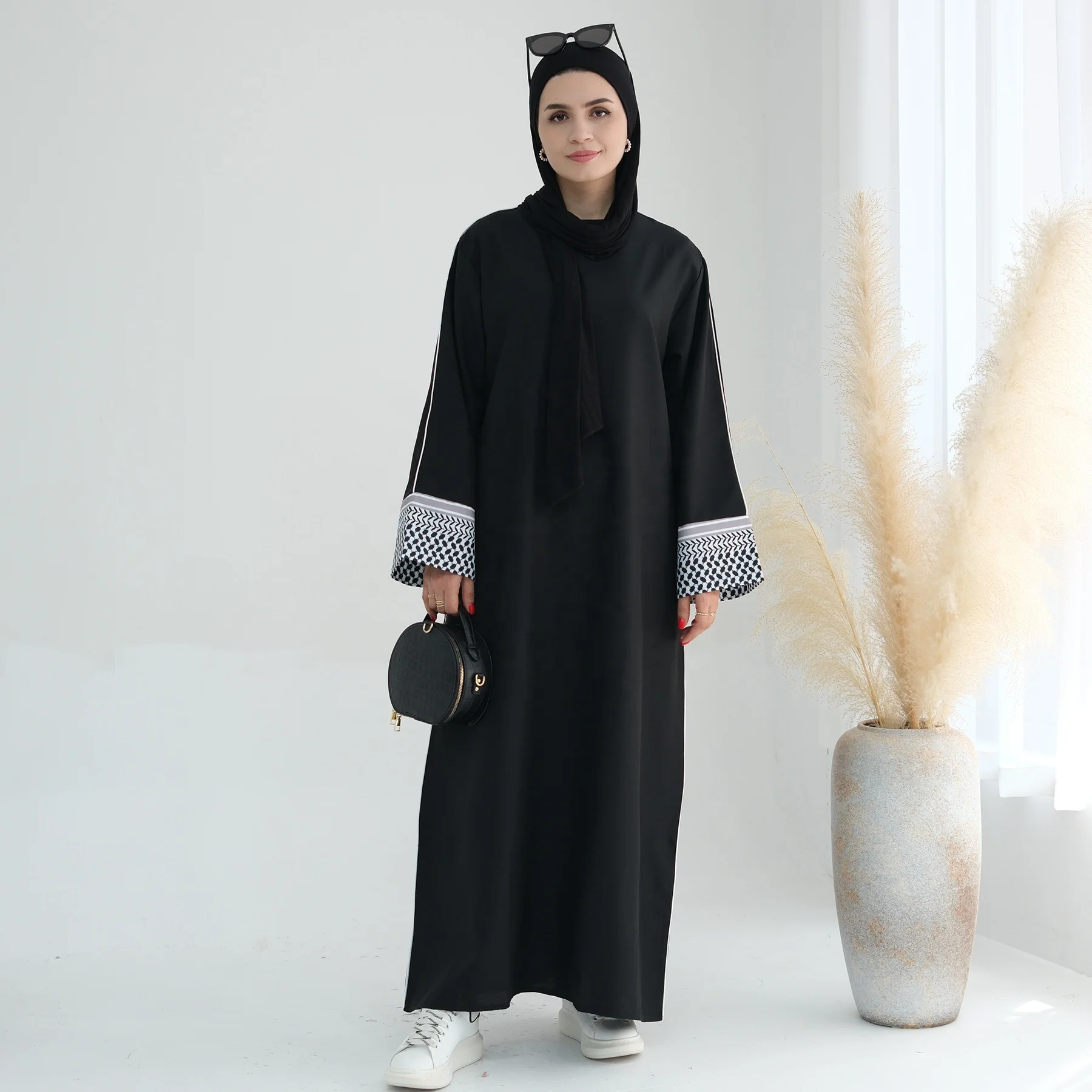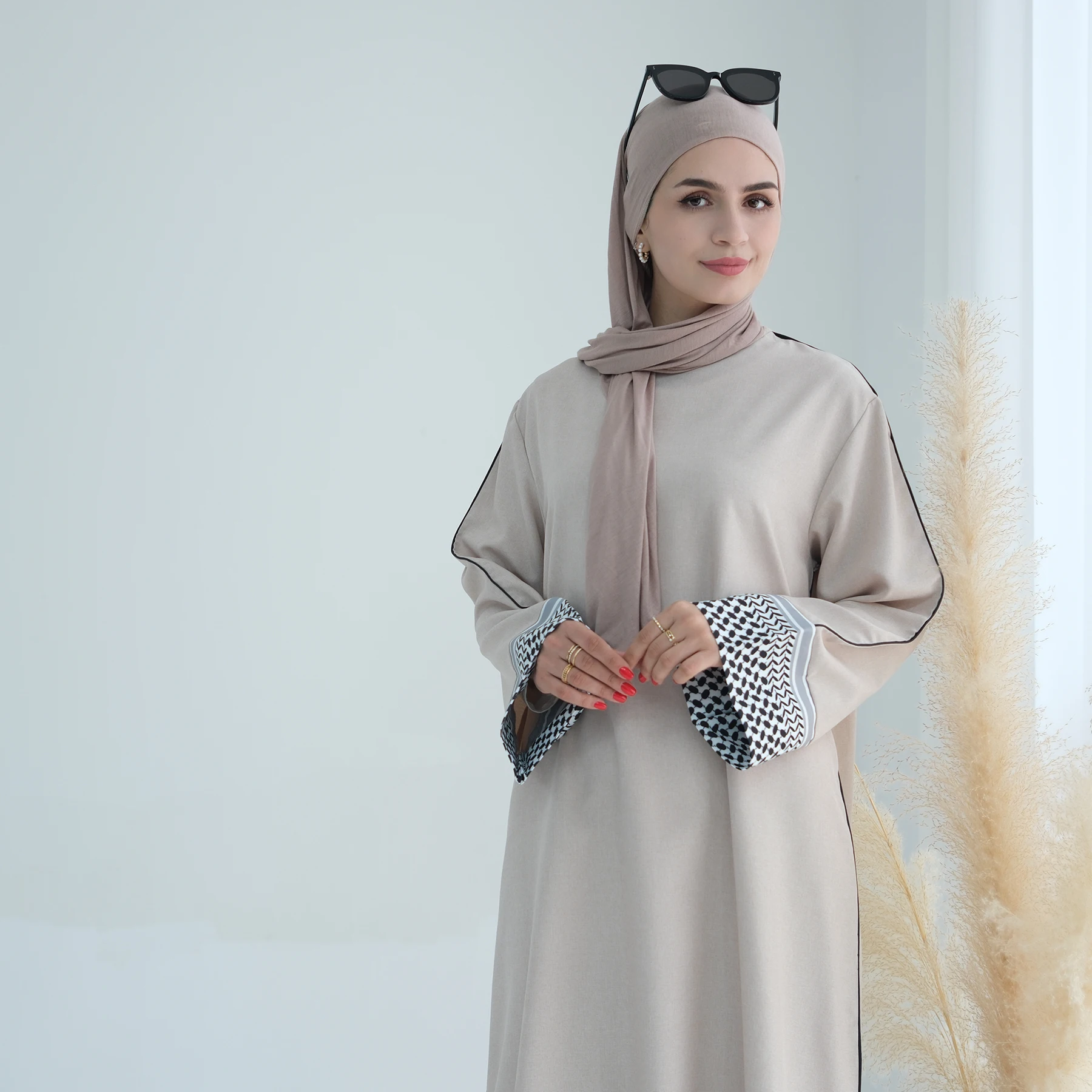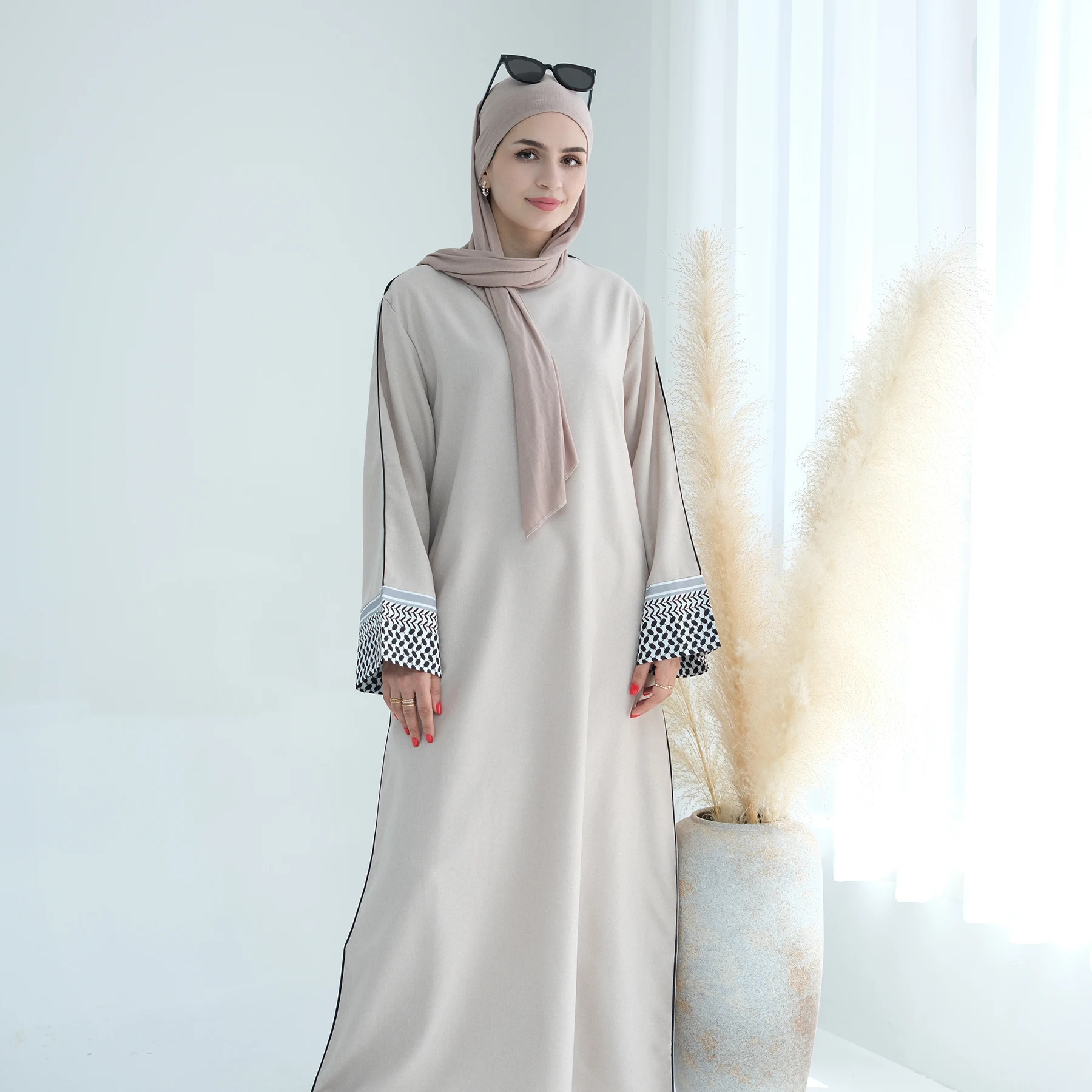 Product Name: 2024 Loriya New Linen Printed Palestine Kufiyah Modest Abaya Simple Closed Abaya Women Muslim Clothing Casual Dresses