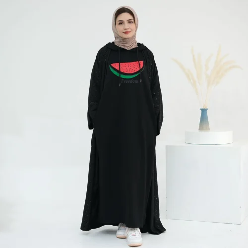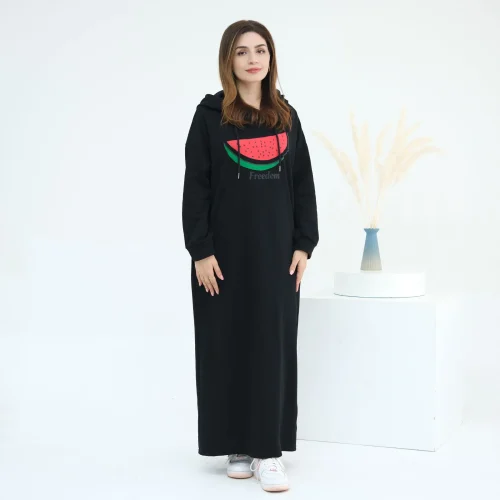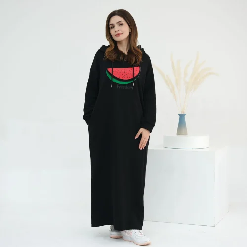 2024 Mexizo Turkish Dubai Abaya Cotton Hoodies Casual Dresses Watermelon Abaya Women Muslim Dress EID Collection