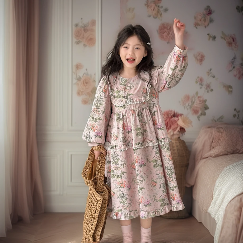 Product Name: 2024 New Retro Floral Dress for Girls Retro Style