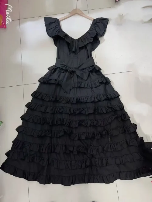 2024 Spring and Summer New Women’s Casual Belt Dress V-Neck Sling Ruffled Layer Australian Holiday Midi for Parties
