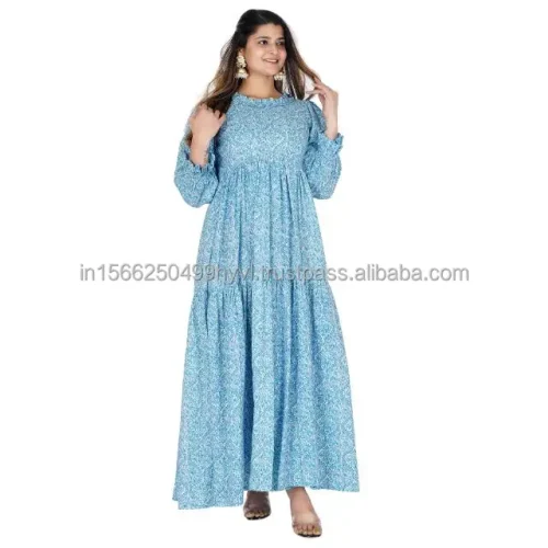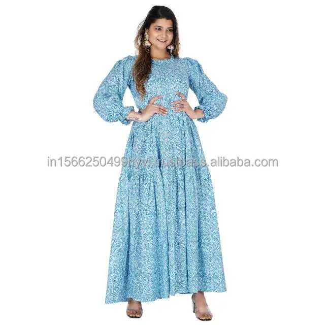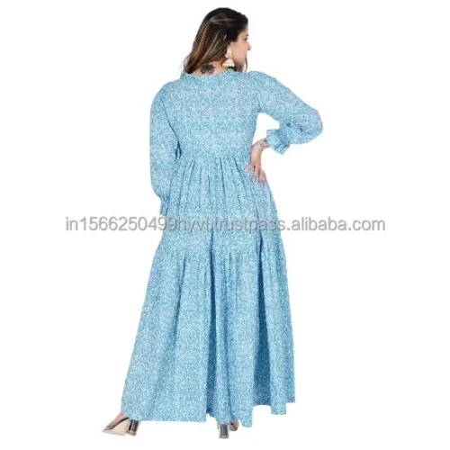 Product Name: 2024 Summer Elegant Women’s 4XL Maxi Dress Floral Printed Casual Long Sleeves Multi Tier Gathered Neck Balloon Embroidered
