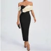 2024 Summer New Women Halter Backless Black Rose Flower Waist Slimming A-line Sleeveless Knitted Dress Ladies Knitted Dress