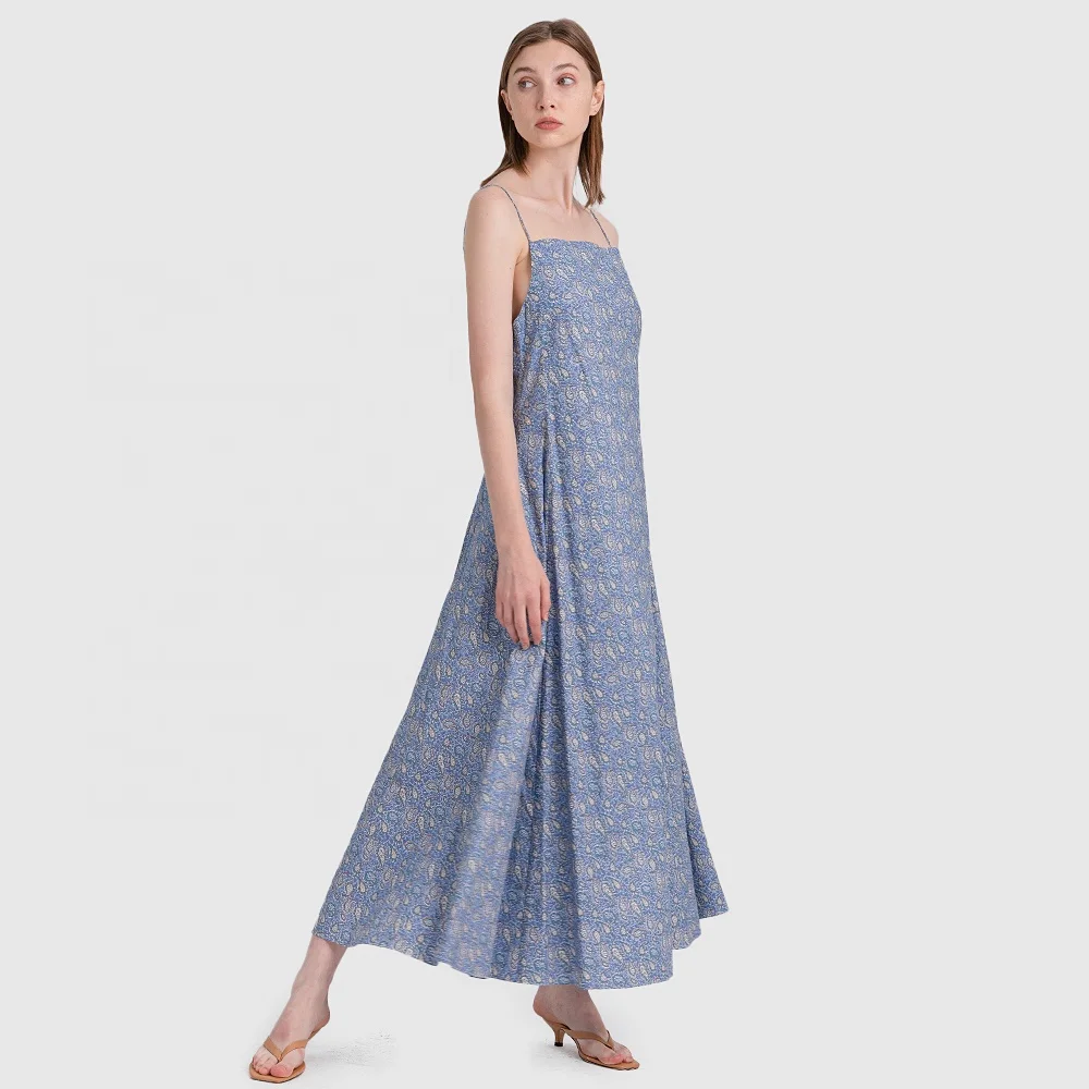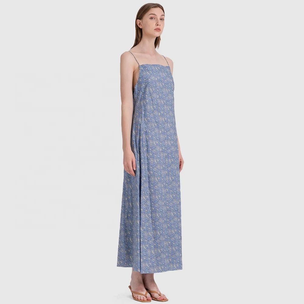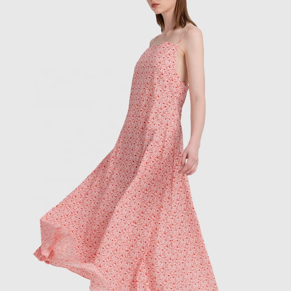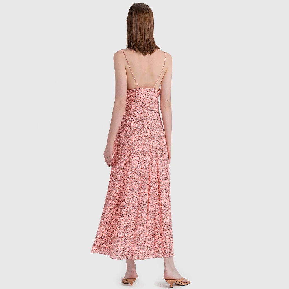 2024 Summer Women High Quality Elegant Lady Boho Slip Pink Pattern Cotton Printed Maxi Dresses