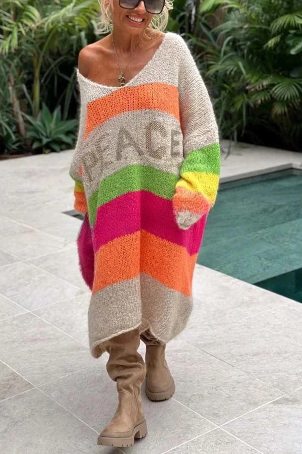Product Name: 2024 the Latest Fashion Trend Beautiful Color Striped Letter V-neck Casual Party Home Street Women’s Knitted Dress