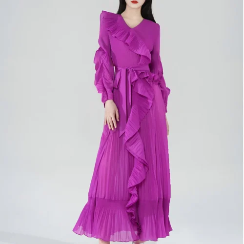 Product Name: 2024 Vintage Style Ladies Maxi Dress High Quality Pleated Ruffled Irregular Layered Ruffle Woven Free Size Casual Party Dress