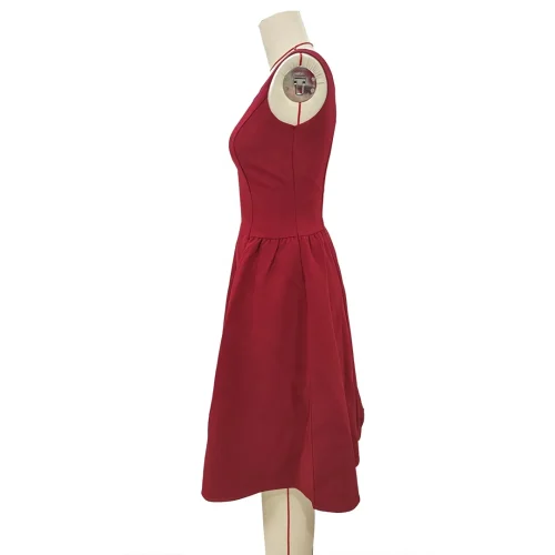 Product Name: 2024 Women’s Red Sundress Slip Dress Square Neck Ladies Tank Dress Sleeveless Smocking Button Front Dress