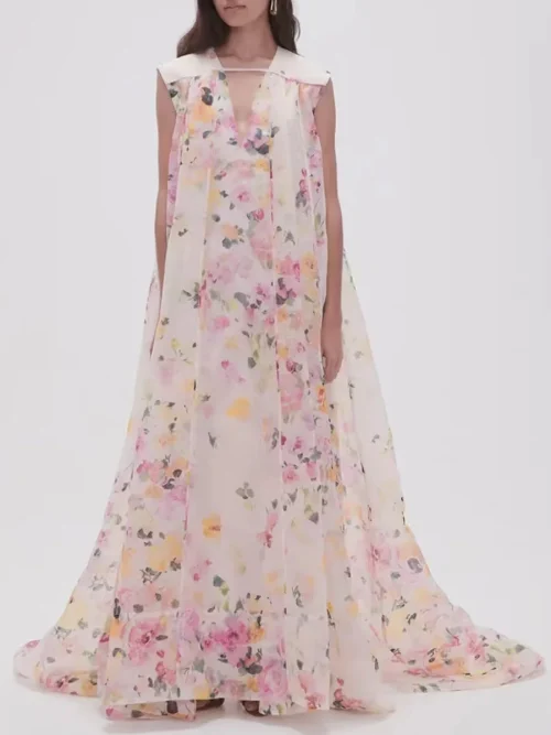 Product Name: 2025 Autumn New Temperament Loose Casual Maxi Women Dress Ruffled Design A-Line Floral Printed Sleeveless Female Dress