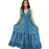 2025 Beach V-Neck Women Seaside Beach Dress Loose Waist Short Lantern Sleeves Maxi Vacation Dresses for Ladies