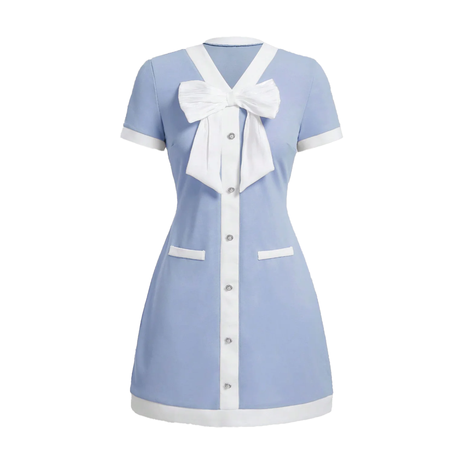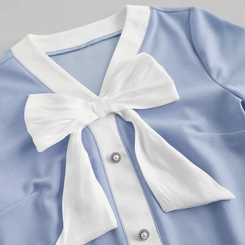 Product Name: 2025 Best Womens Career Dresses With Bow Tie Button Down Short Sleeve A Line Dress For Office and Work Career Dresses