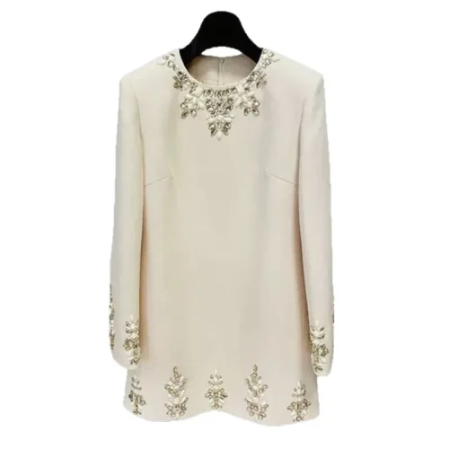 Product Name: 2025 Fall New Star Show High Quality Elegant Short Women’s Dresses Casual Midi Evening Long Sleeve Hand Nailed Beaded Diamond